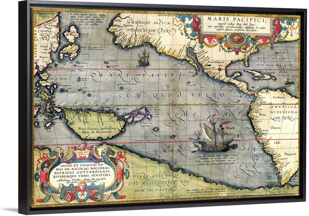 <p>Map of the Pacific Ocean (Maris Pacifici...) by Abraham Ortelius, 1589, printed in Antwerp, first state, private collection.</p>
