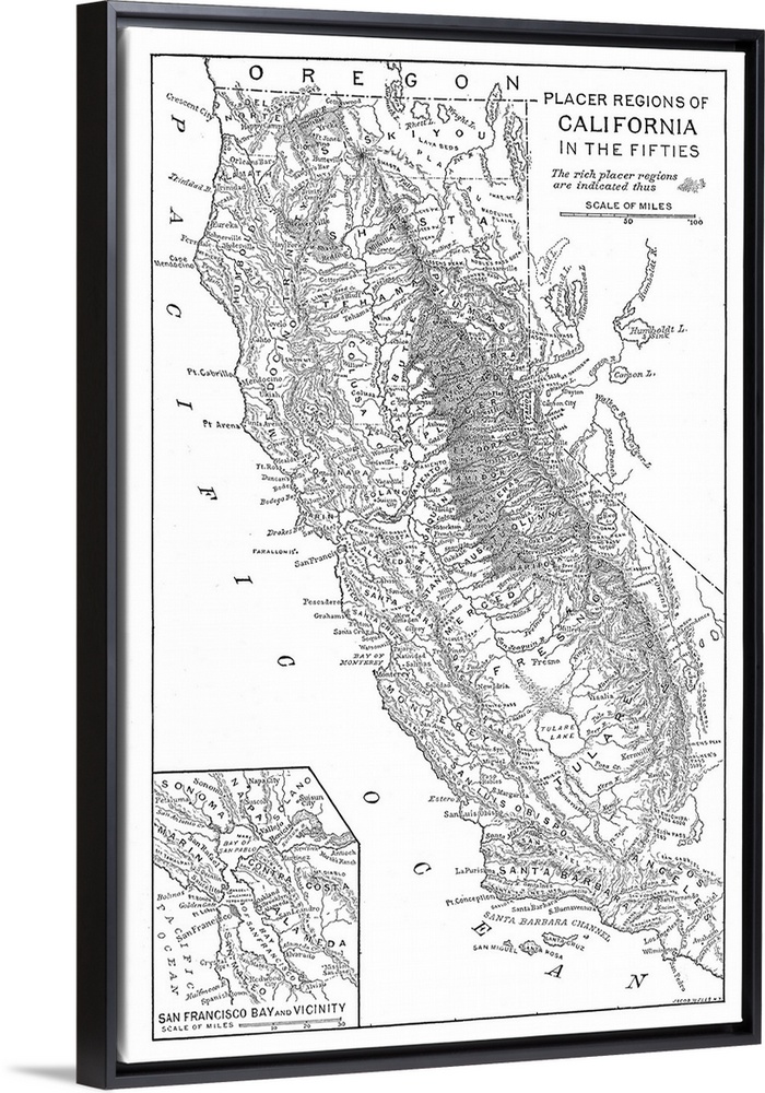 <p>Gold Rush, Map. Map Of the Placer Mining Regions Of California In the 1850s. Engraving, American, Late 19th Century.</p>