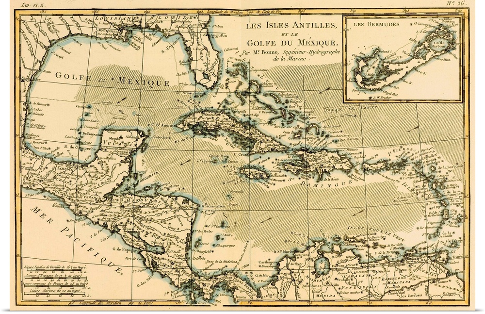 <p>Map Of The West Indies And The Mexican Gulf, Circa. 1760. From "Atlas De Toutes Les Parties Connues Du Globe Terrestre,"? By Cartographer Rigobert Bonne. Published Geneva, Circa. 1760.</p>