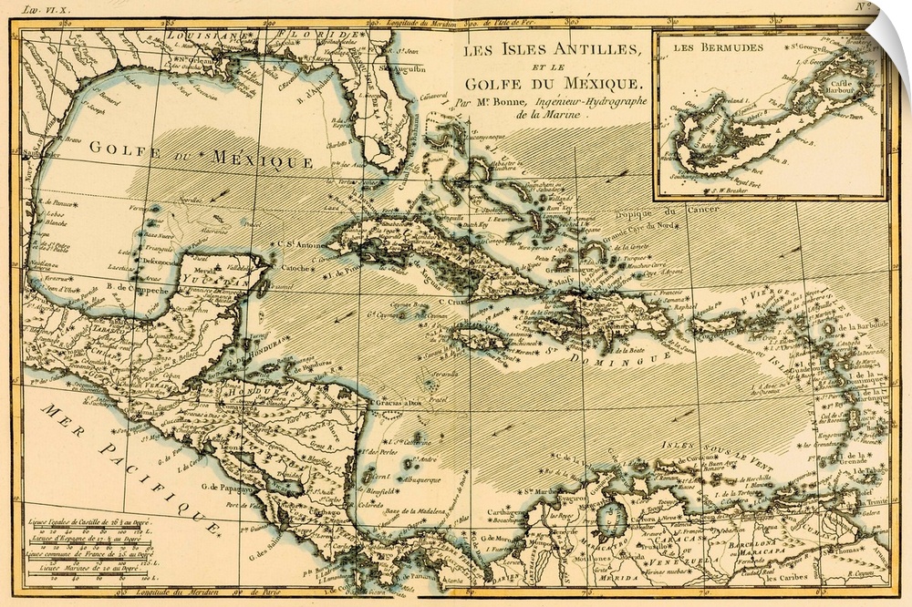 <p>Map Of The West Indies And The Mexican Gulf, Circa. 1760. From "Atlas De Toutes Les Parties Connues Du Globe Terrestre,"? By Cartographer Rigobert Bonne. Published Geneva, Circa. 1760.</p>
