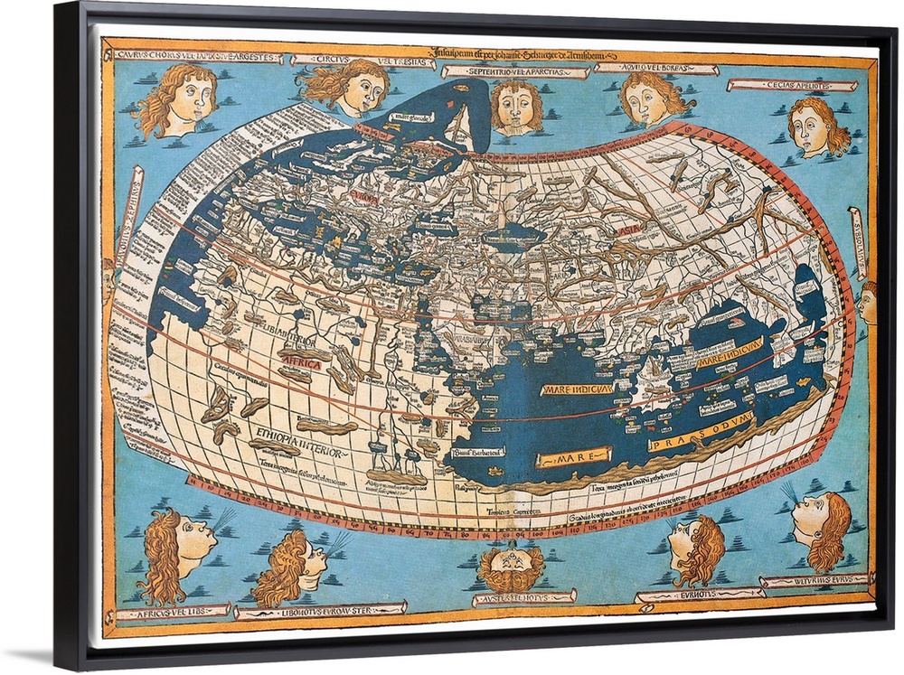 <p>Map of the world (in those days known), after Claudius Ptolemy's work (Egyptian Roman, mathematician</p>