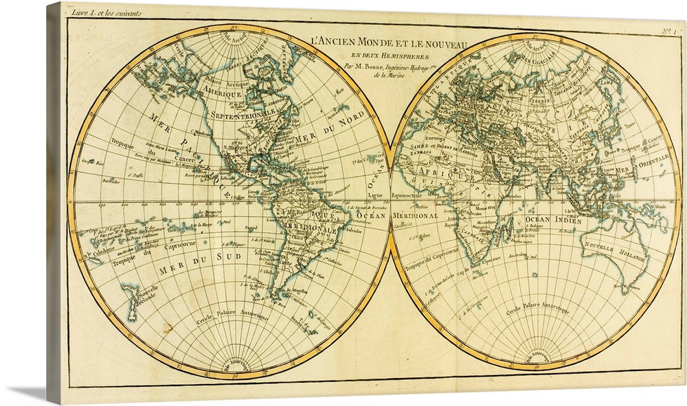<p>Map Of World, Circa. 1760. From "Atlas De Toutes Les Parties Connues Du Globe Terrestre,"? By Cartographer Rigobert Bonne. Published Geneva, Circa. 1760.</p>