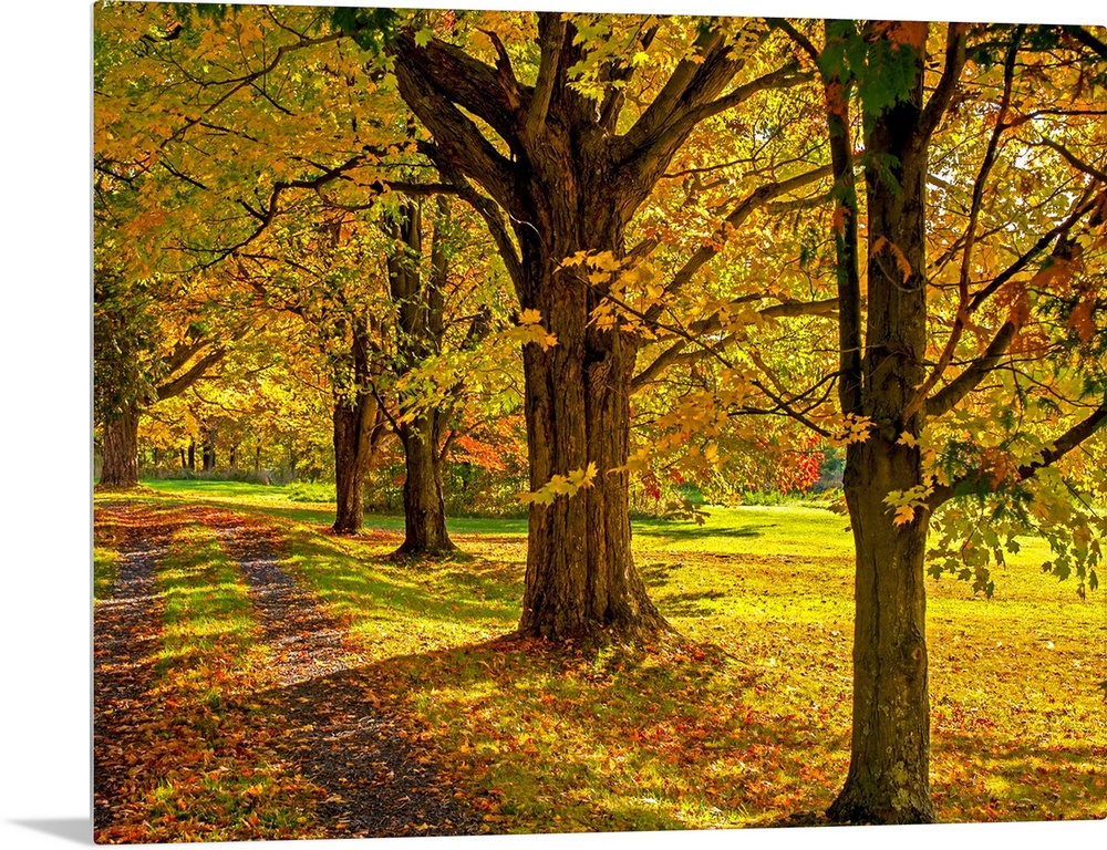 <p>Maple trees line a driveway in autumn, Fulford, Quebec, Canada.</p>