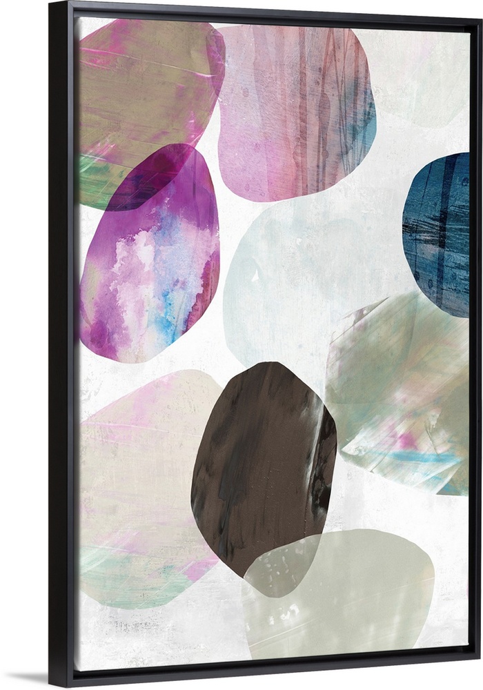 <p>Contemporary painting of multi-color circles in tones of pink, brown and blue in the appearance of stones.</p>