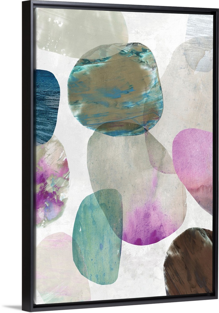<p>Contemporary painting of multi-color circles in tones of pink, brown and blue in the appearance of stones.</p>