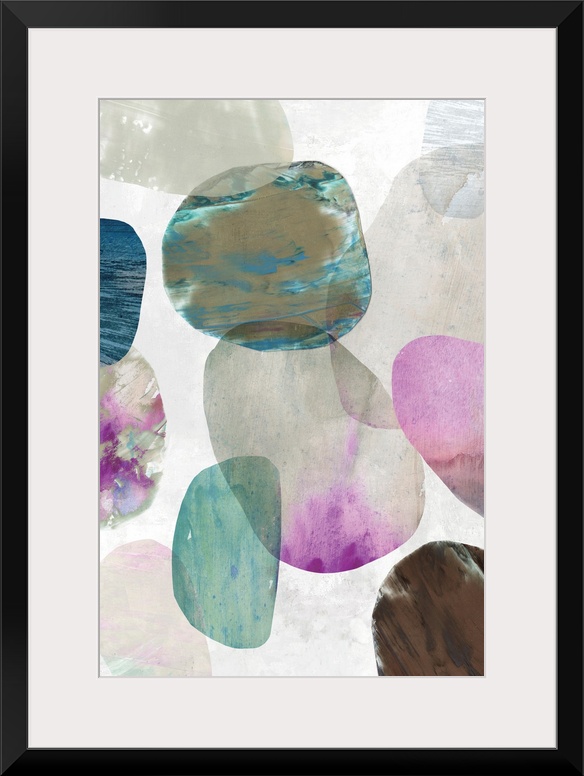 <p>Contemporary painting of multi-color circles in tones of pink, brown and blue in the appearance of stones.</p>