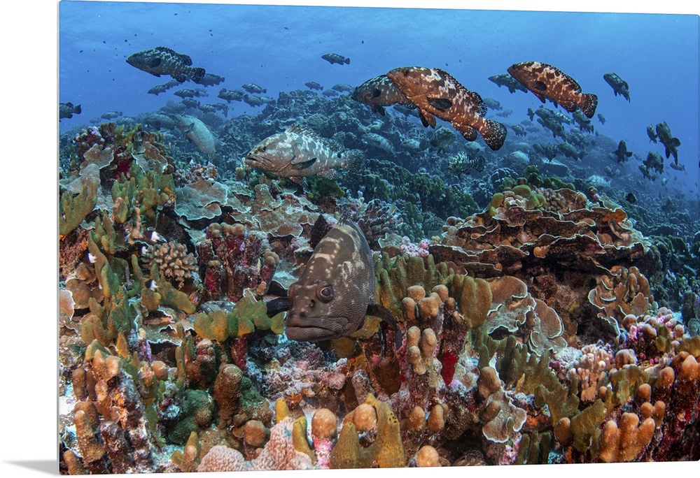 <p>Marbled grouper from the French Polynesian Islands gather in the South Pass of Fakarava to spawn just once a year, French Polynesia.</p>