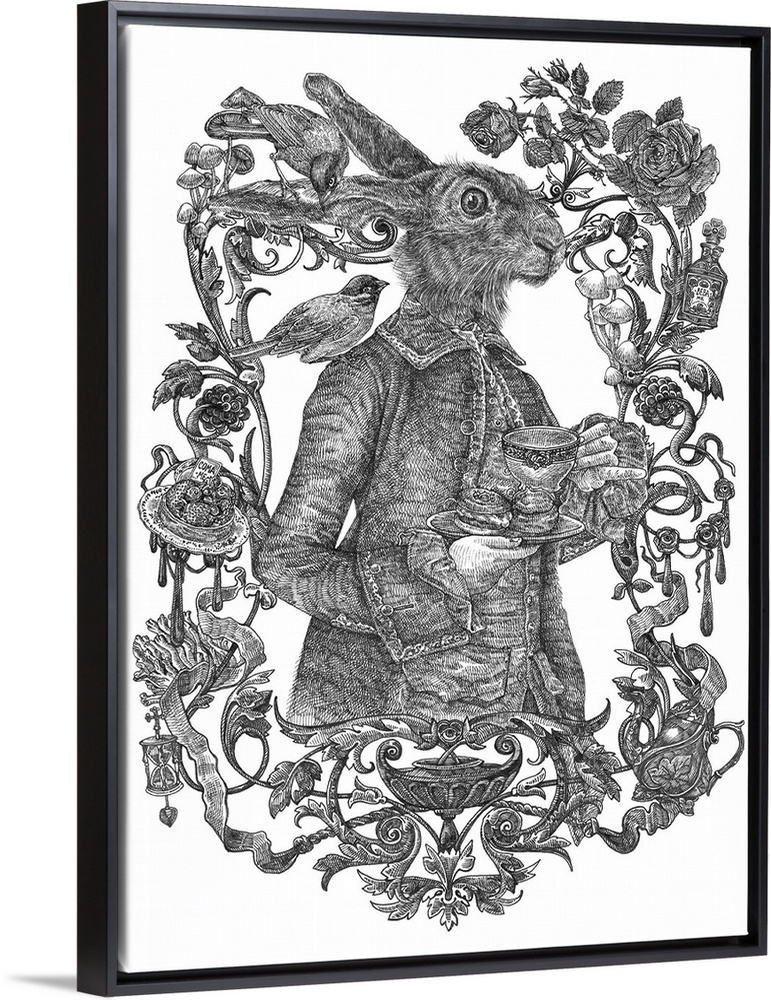 Alice in Wonderland Art Black and White Wall Art Contemporary Art Drawing Fantasy Reading and Literature Rabbit