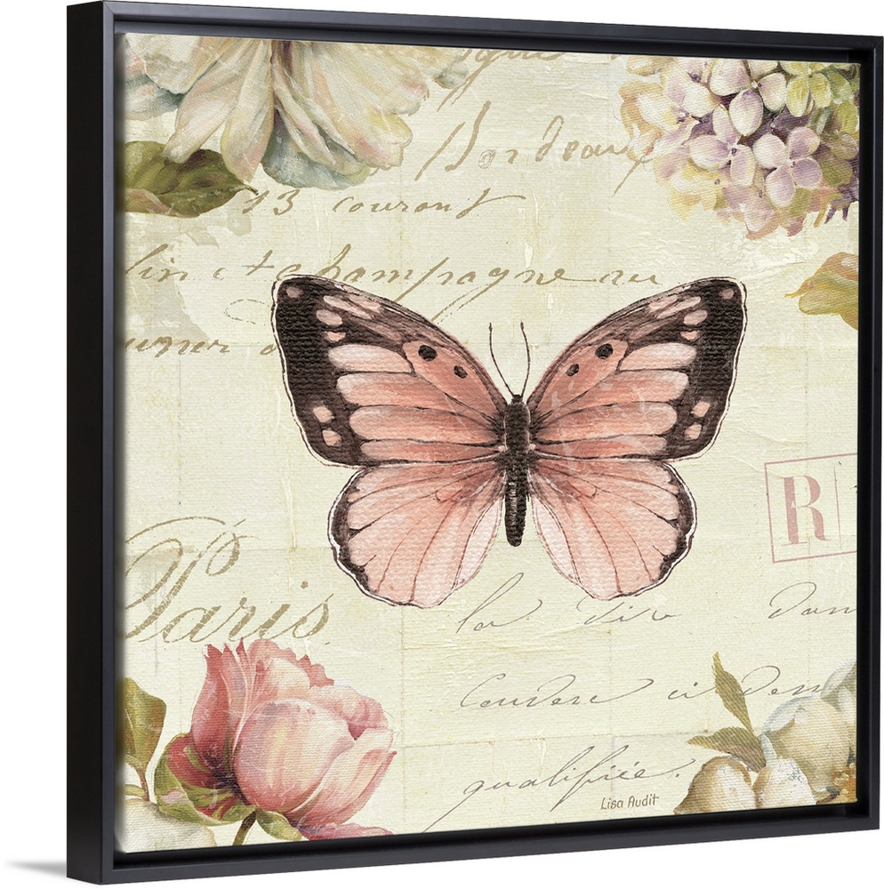 <p>Contemporary artwork of a butterfly with text text against a light cream colored background.</p>