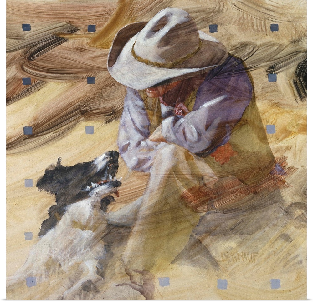 <p>Western themed contemporary painting of a cowboy and his faithful dog.</p>