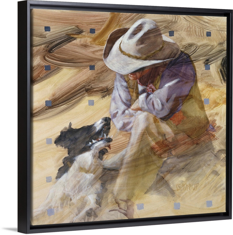 <p>Western themed contemporary painting of a cowboy and his faithful dog.</p>