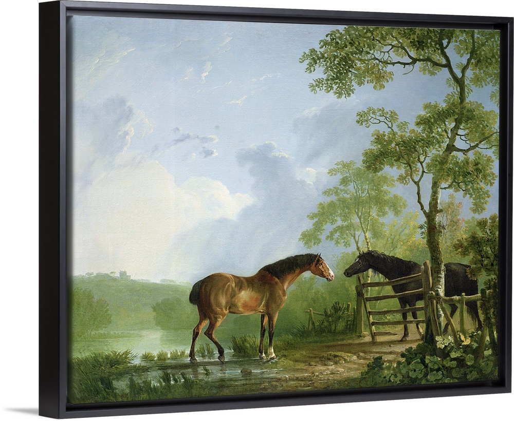 <p>BAL226691 Mare and Stallion in a Landscape (oil on canvas) by Gilpin, Sawrey (1733-1807); 63.5x76.2 cm; Private Collection; Courtesy of Thomas Brod and Patrick Pilkington; English, out of copyright</p>