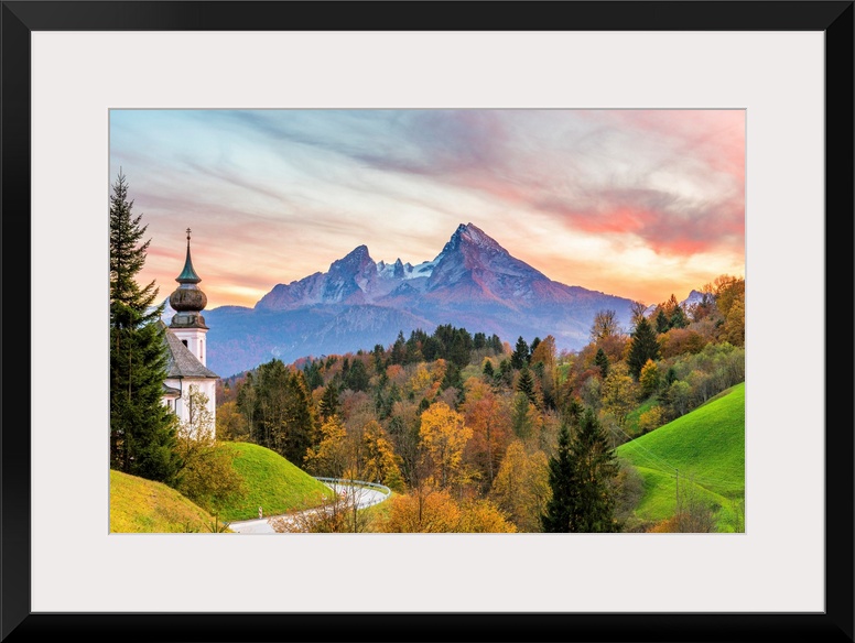 <p>Maria Gern, Berchtesgaden, Bavaria, Germany, Europe. The Church Of Maria Gern At Sunset</p>