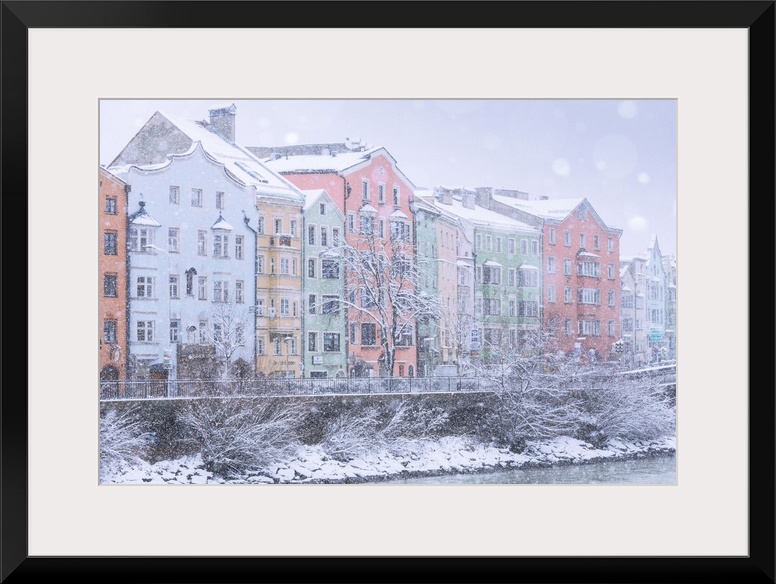 <p>Mariahilf facades on a snowy day, Innsbruck, Tyrol, Austria</p>