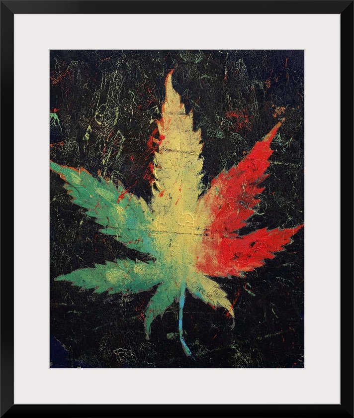 <p>A contemporary painting of a Rasta colored plant leaf.</p>