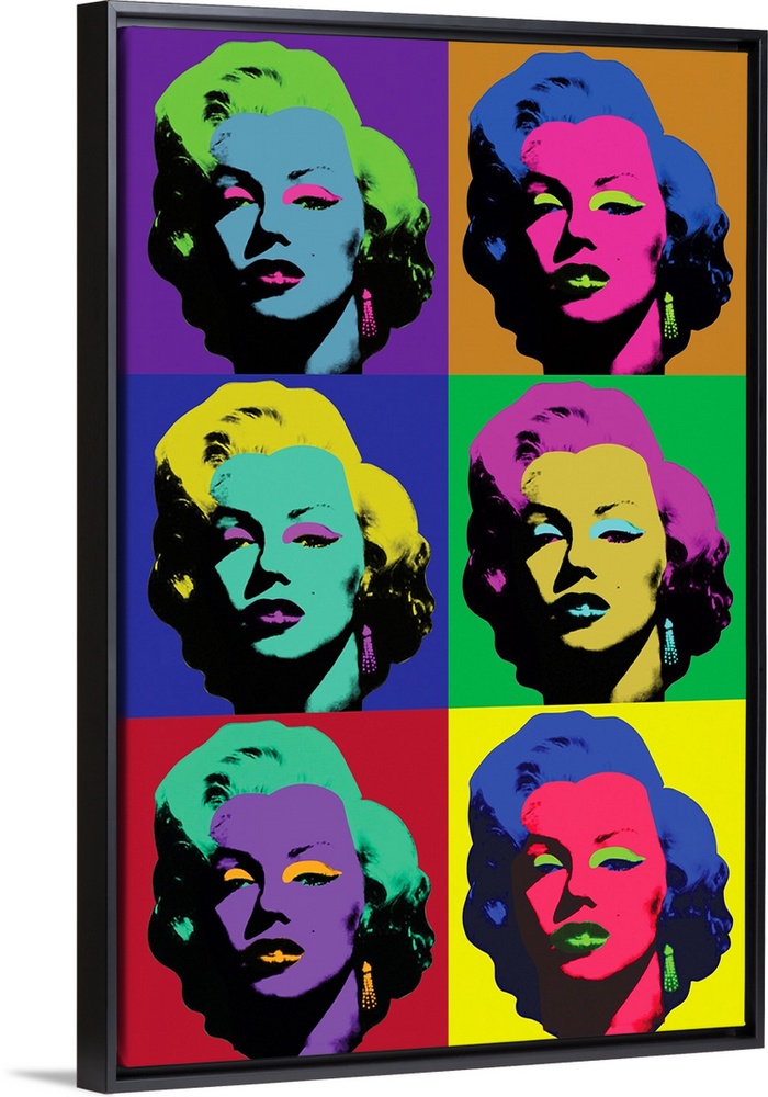 <p>Pop art style squares of Marilyn Monroe stacked together vertically in various vibrant hues.</p>
