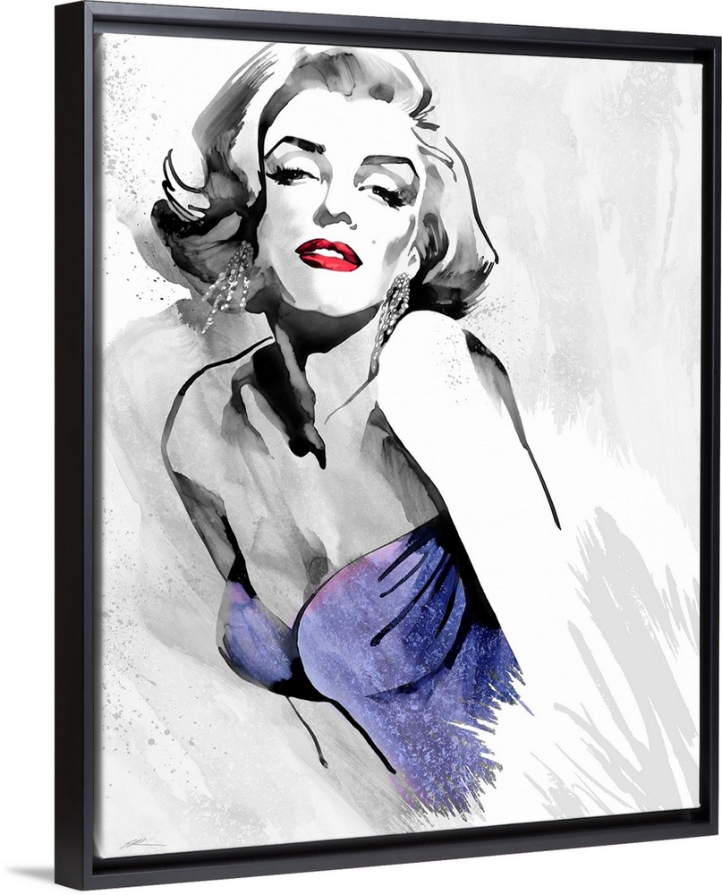 Art Decorative Art Music, Movies and TV Hollywood Icons Marilyn Monroe Painting People Celebrities Purple Wall Art Ellie Rahim Watercolor