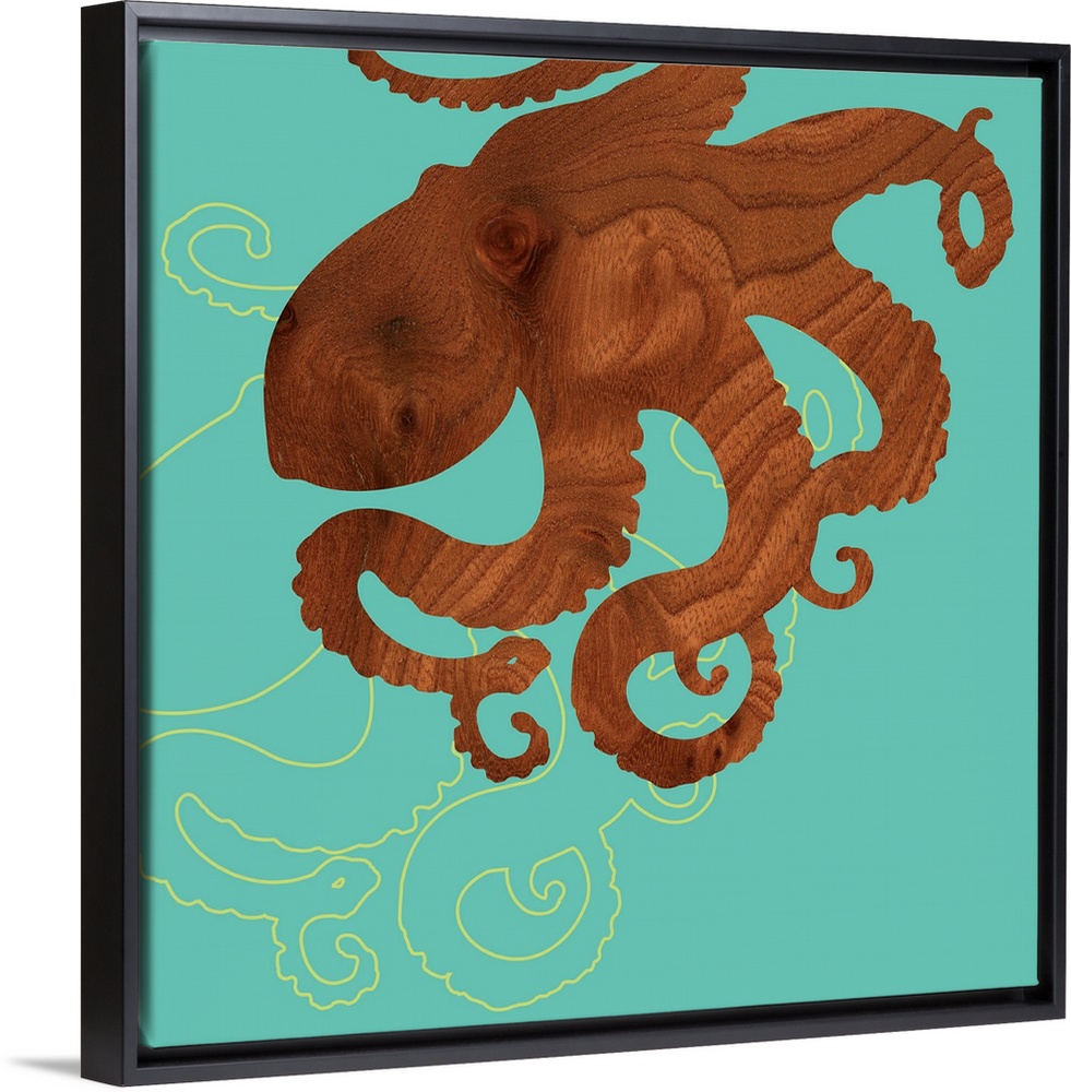 Art Blue Wall Art Decorative Art Mixed Media Art Wildlife Marine Life Octopus and Squid