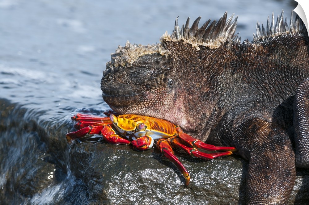 <p>Marine Iguana sleeping on a Sally Light Foot Crab, Puerto Egas, James Bay, Santiago Island, Ecuador.</p>