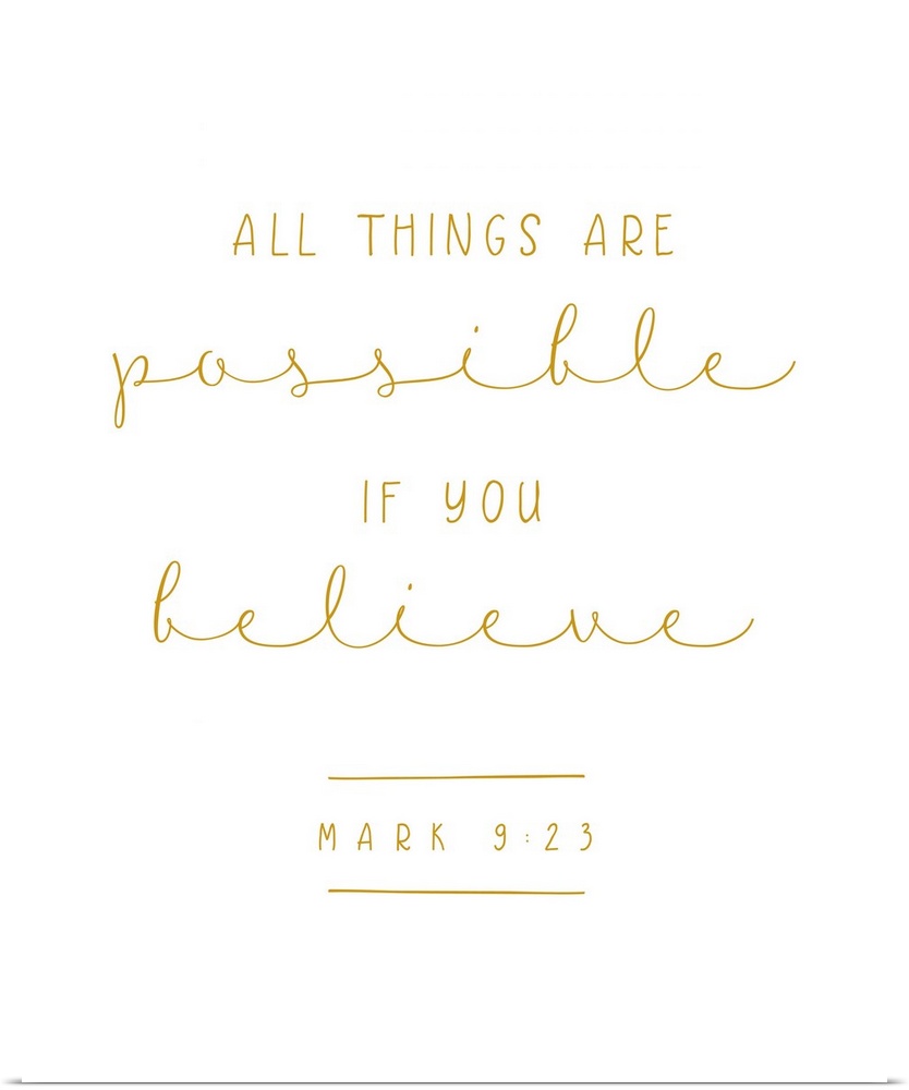 <p>Handlettered Bible verse reading All things are possible if you believe.</p>
