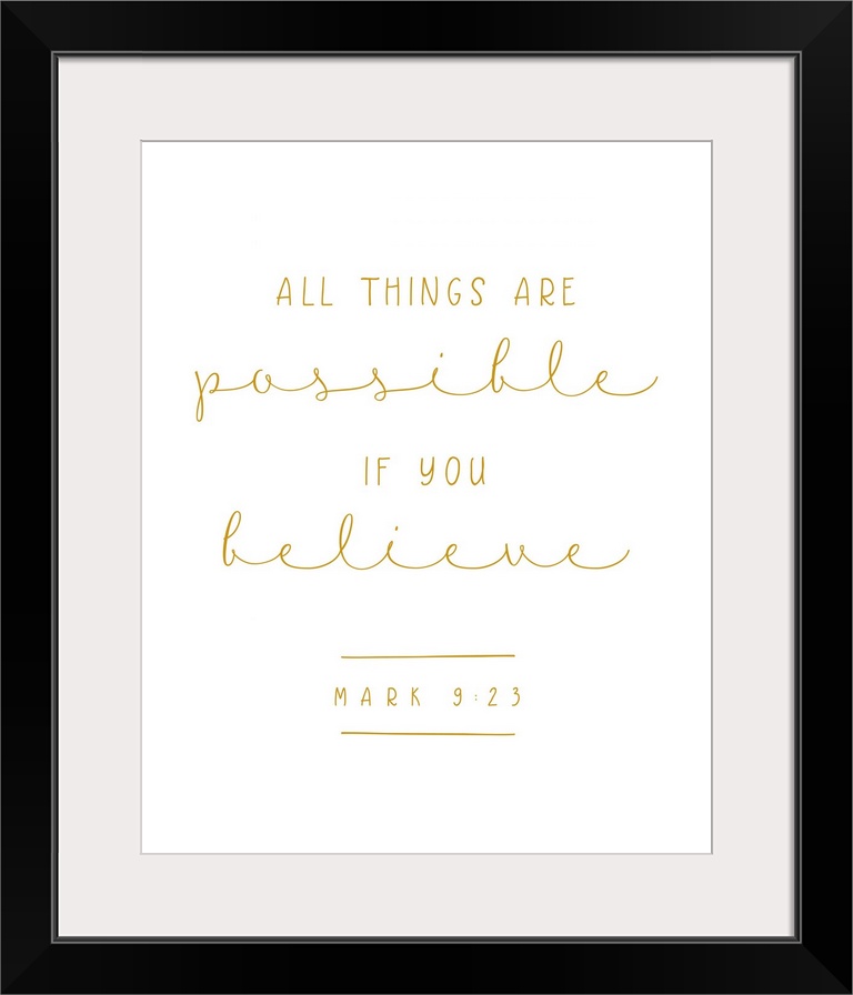 <p>Handlettered Bible verse reading All things are possible if you believe.</p>