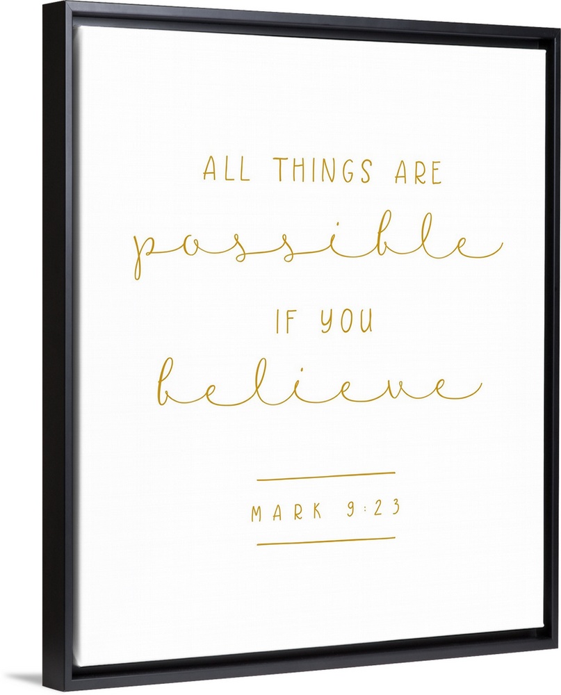 <p>Handlettered Bible verse reading All things are possible if you believe.</p>