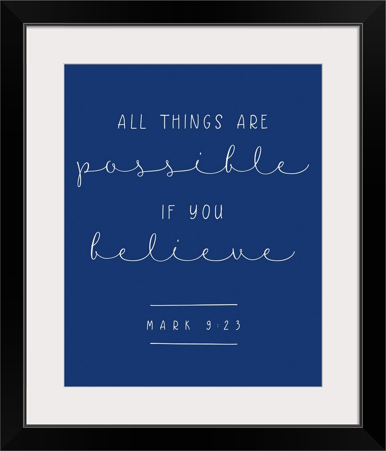<p>Handlettered Bible verse reading All things are possible if you believe.</p>