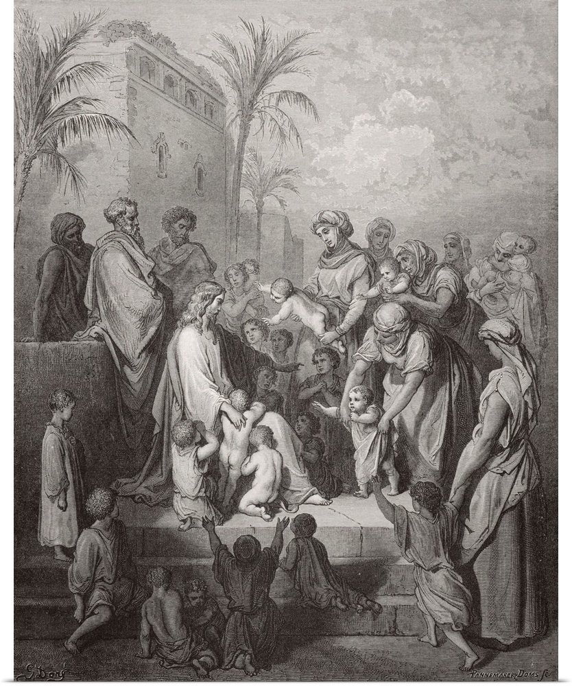<p>Engraving From The Dore Bible Illustrating Mark X, 13 To 16, Jesus Blessing The Children, By Gustave Dore, 1832-1883, French Artist And Illustrator.</p>