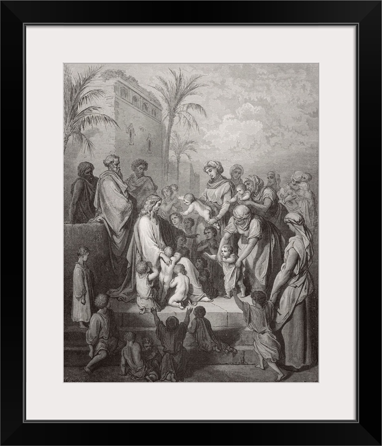 <p>Engraving From The Dore Bible Illustrating Mark X, 13 To 16, Jesus Blessing The Children, By Gustave Dore, 1832-1883, French Artist And Illustrator.</p>