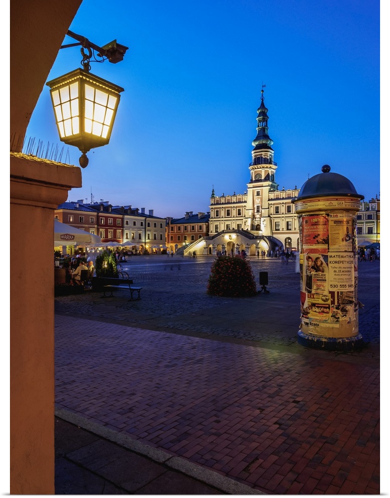 <p>Market Square and City Hall at twilight, Old Town, Zamosc, Lublin Voivodeship, Poland</p>