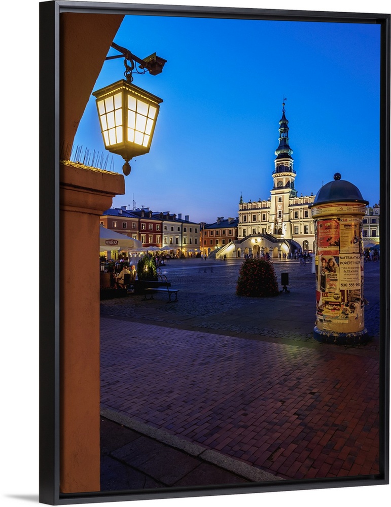 <p>Market Square and City Hall at twilight, Old Town, Zamosc, Lublin Voivodeship, Poland</p>