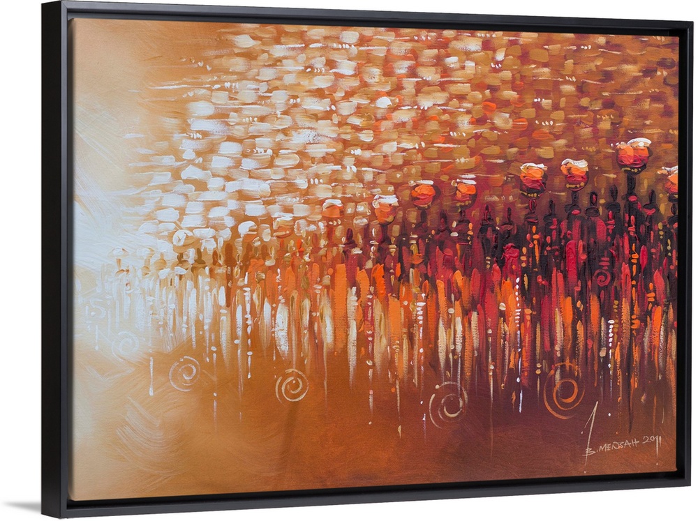 <p>Stretching as far as the eye can see, merchants and shoppers mingle in a vast outdoor market. Crowds throng this scene from modern day West Africa. Bernard Mensah portrays them moving in unison, united in purpose.</p>