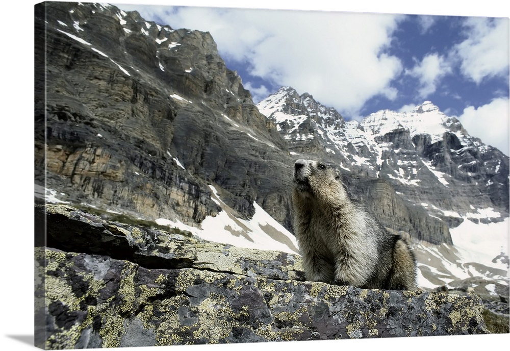 <p>Close-up of a Marmot sitting on rock and looking out in the Rocky Mountains of Yoho National Park, BC, Canada, British Columbia, Canada</p>