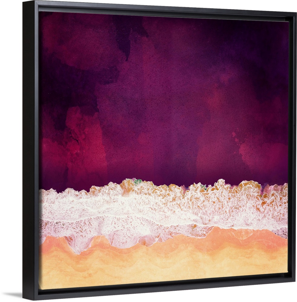 <p>Abstract depiction of a maroon ocean with sea foam, sand and purple.</p>