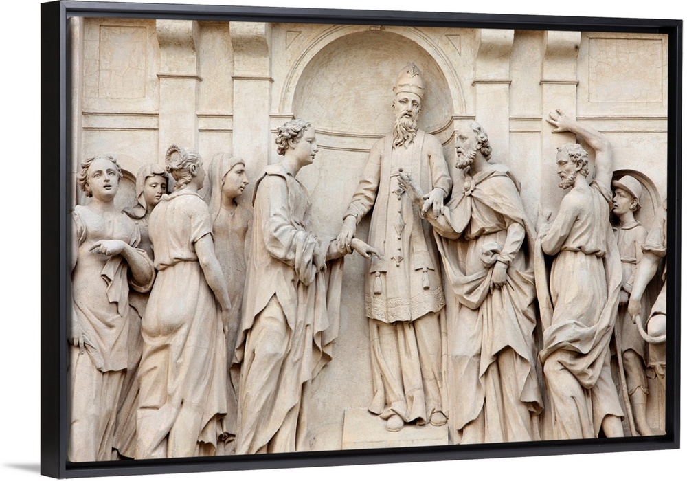 <p>Marriage of Joseph and Mary, Loreto church sculpture, Prague, Czech Republic, Europe.</p>