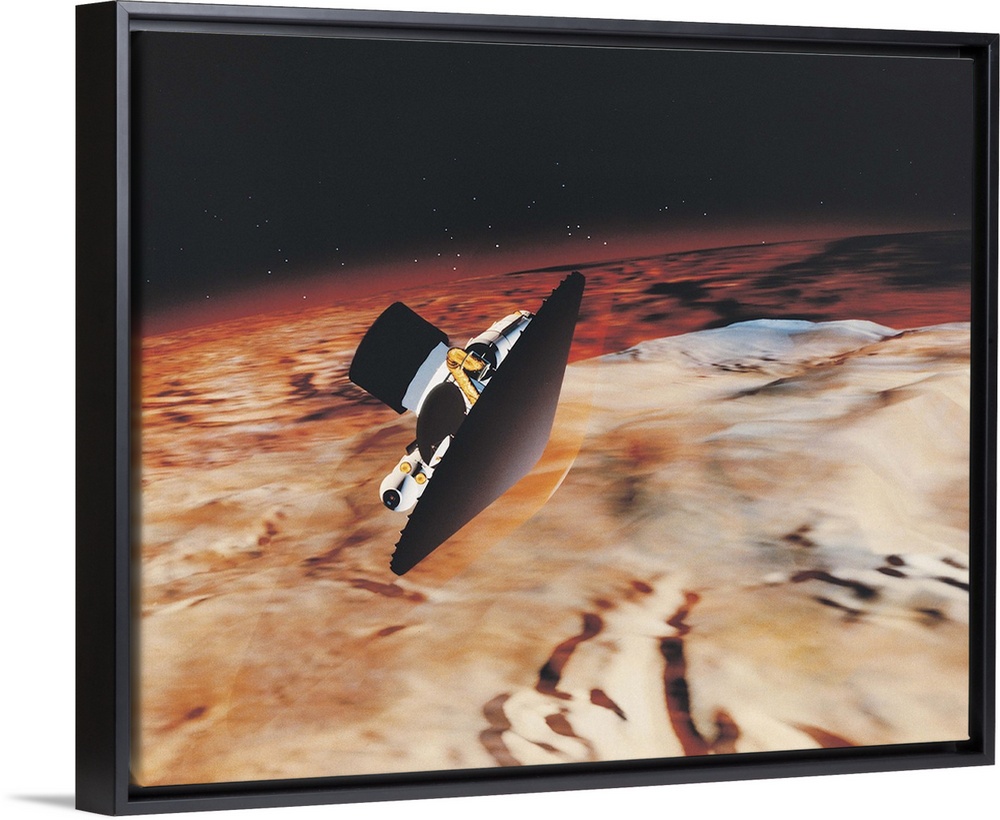 <p>Mars piloted vehicle performing an aerobrake maneuver over Mars (Computer Generated Image)</p>