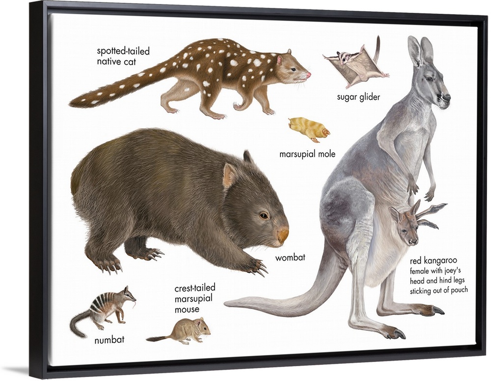 <p>An educational poster from Encyclopaedia Britannica of different marsupials.</p>