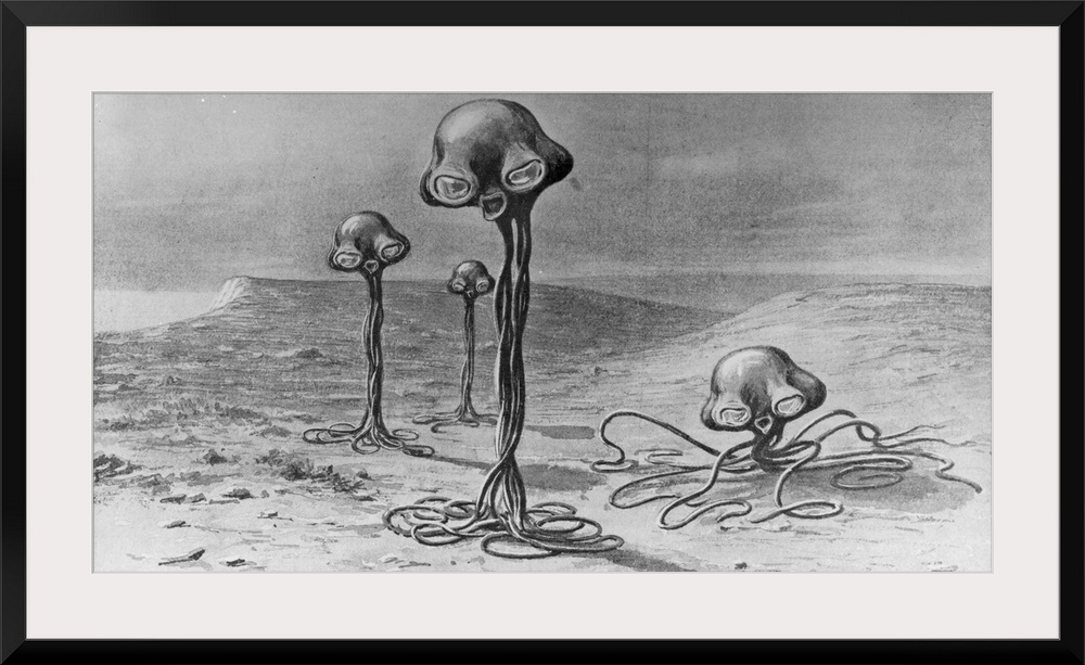 <p>XIR162323 Martians, illustration from 'The War of the Worlds' by H. G. Wells (1866-1946) (engraving) (b/w photo) by French School, (19th century); Private Collection; Giraudon; French</p>