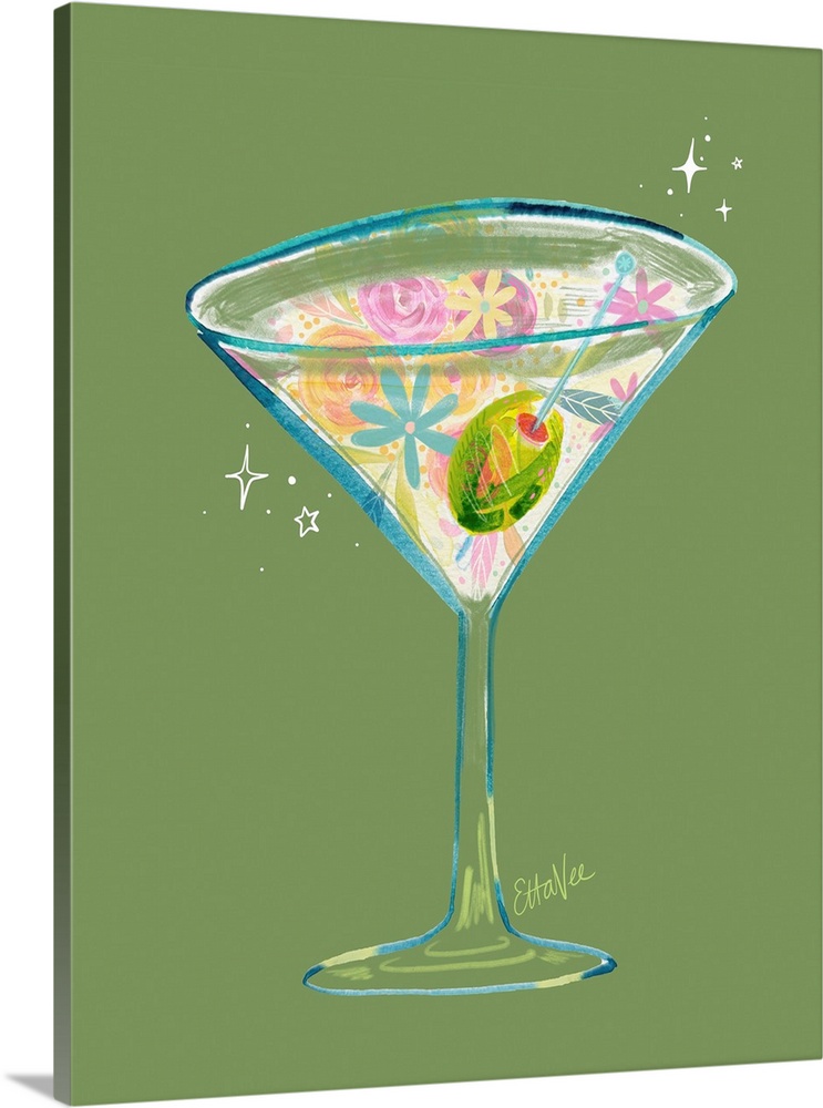 Art EttaVee Art Decorative Art Food and Drink Drinks Cocktails Green Wall Art Painting