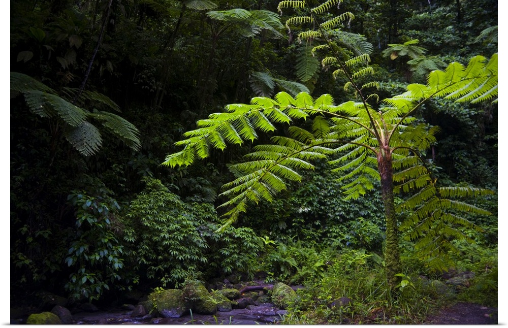 <p>MARTINIQUE. French Antilles. West Indies. Tree fern (Cyathea spp.) in the Gorge of the Falaise River (Gorges de la Falaise).</p>