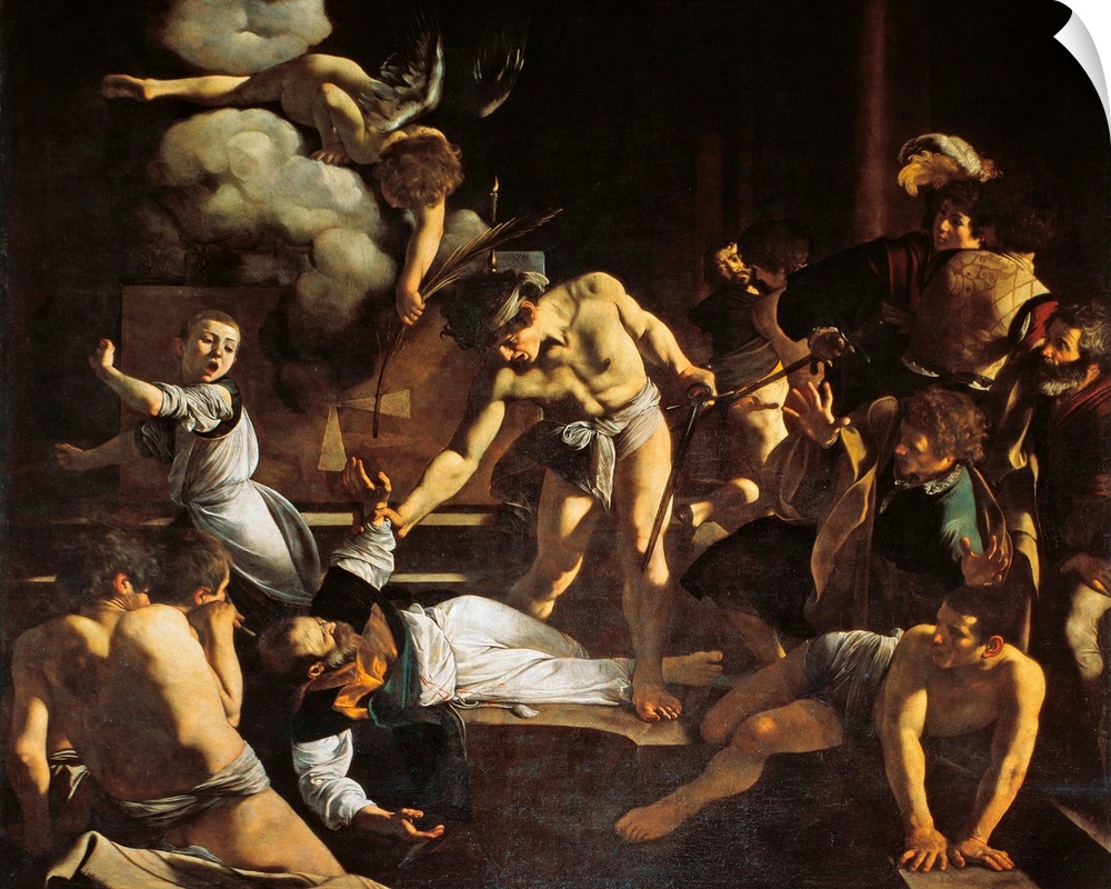 <p>The Martyrdom of St. Matthew, by Michelangelo Merisi known as Caravaggio, 1599 - 1600, 16th Century, oil on canvas, cm 323 x 343 - Italy, Lazio, Rome, San Luigi dei Francesi Church. All. Martyrdom St. Matthew executioner young man nude guard onlookers ang</p>
