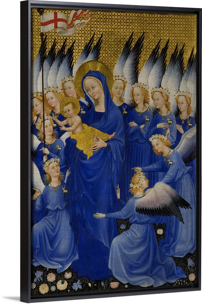 <p>Mary with Child and Angels, right panel of Wilton Diptych, c. 1395-9, egg tempera on wood.</p>