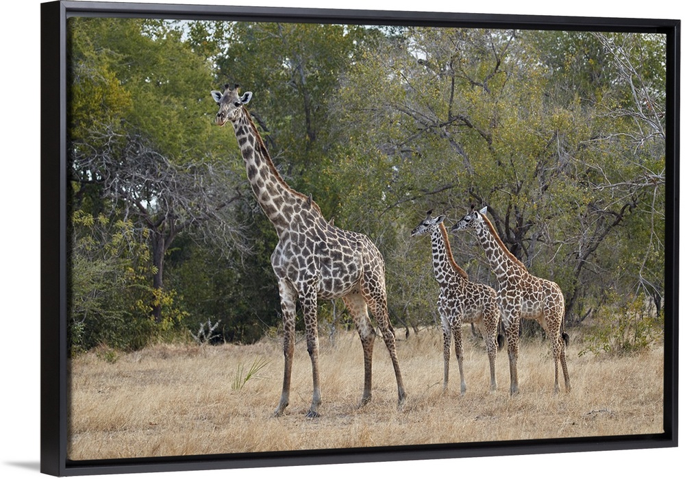 <p>Masai giraffe, adult and two juveniles, Selous Game Reserve, Tanzania</p>