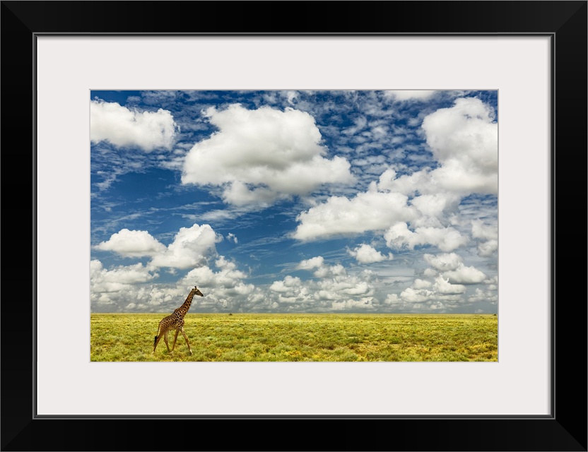 <p>Masai giraffe on open plains of Serengeti national park, Tanzania, Africa, Giraffa Camelopardalis Tippelskirchii.</p>