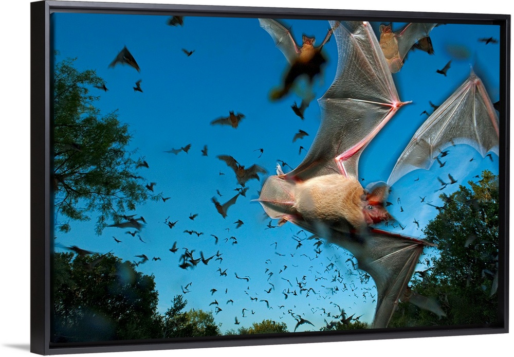 <p>Mexican free-tailed bats fleeing Eckert James River Bat Cave Preserve.</p>