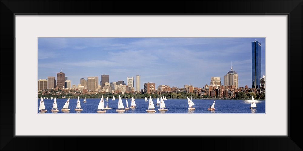 <p>Giant landscape photograph of many sailboats in the Charles River, the Boston skyline in the background.</p>