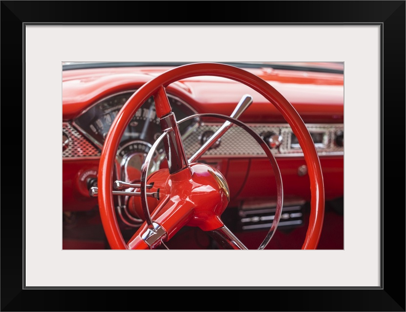 <p>Massachusetts, Cape Ann, Gloucester, Antique Car, Early 1960's-Era Antique Car Interior</p>
