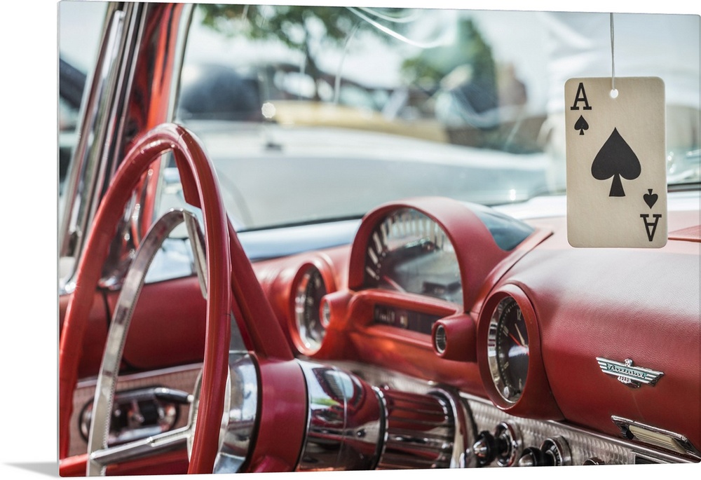 <p>Massachusetts, Cape Ann, Gloucester, Antique Car Interior And Ace Of Spades Card</p>