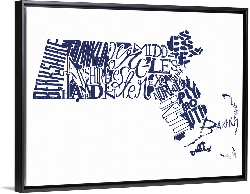 Art Blue Wall Art Graphic Art Jace Grey Maps Massachusetts Typography & Calligraphy