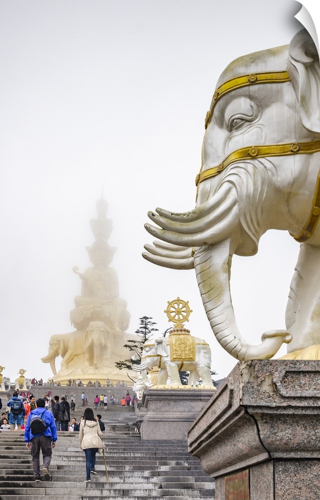 <p>Massive statue of Samantabhadra at the summit of Mount Emei, Sichuan Province, China</p>